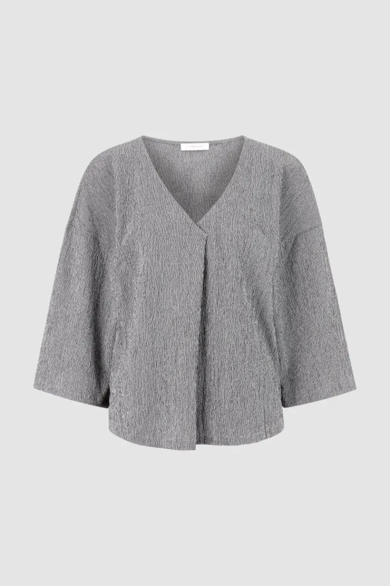 Das einzigartige Longsleeve präsentiert einen überlappenden V-Neck mit Falte im Vorderteil. Der zweifarbige Look kommt mit elastischem Material und softer Haptik. Das Oberteil hat einen lockeren Schnitt und weite Ärmel.