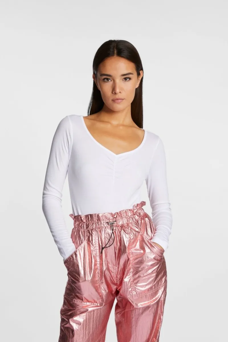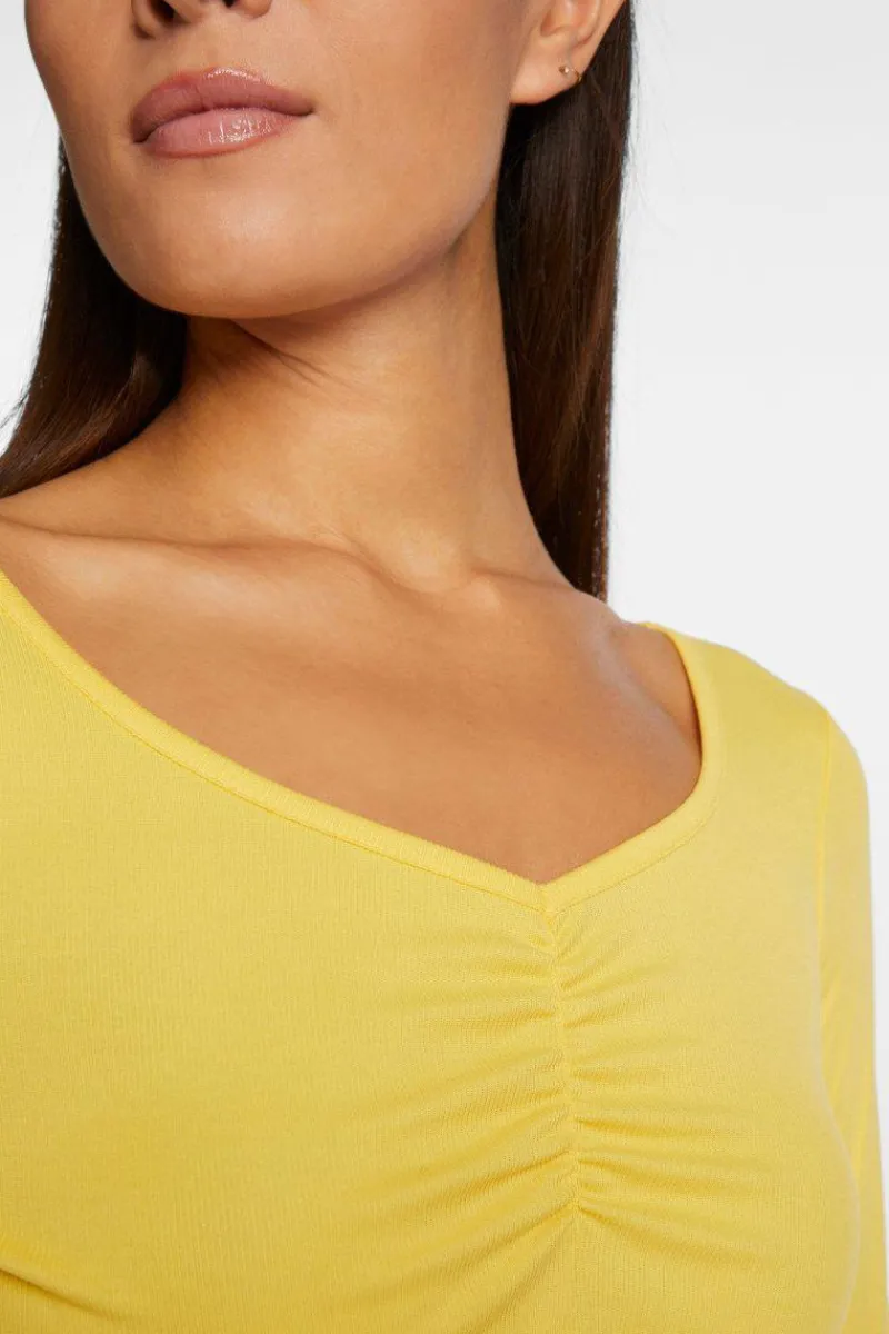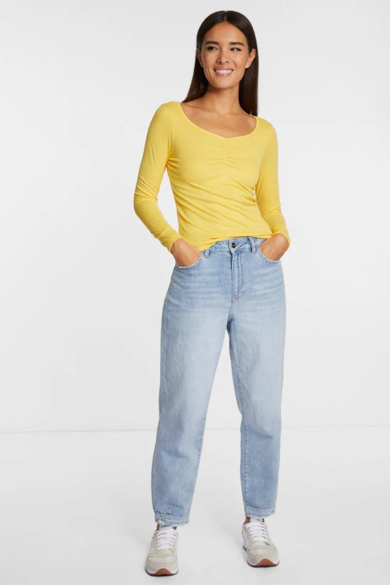 Für einen chilligen Look sorgt dieses Longsleeve mit seinem lässig gesmoktem V-Neck. Der figurnahe Schnitt kommt in dezenter Rippenstruktur. Dank weichem Material-Mix überzeugt das Basic mit Tragekomfort.