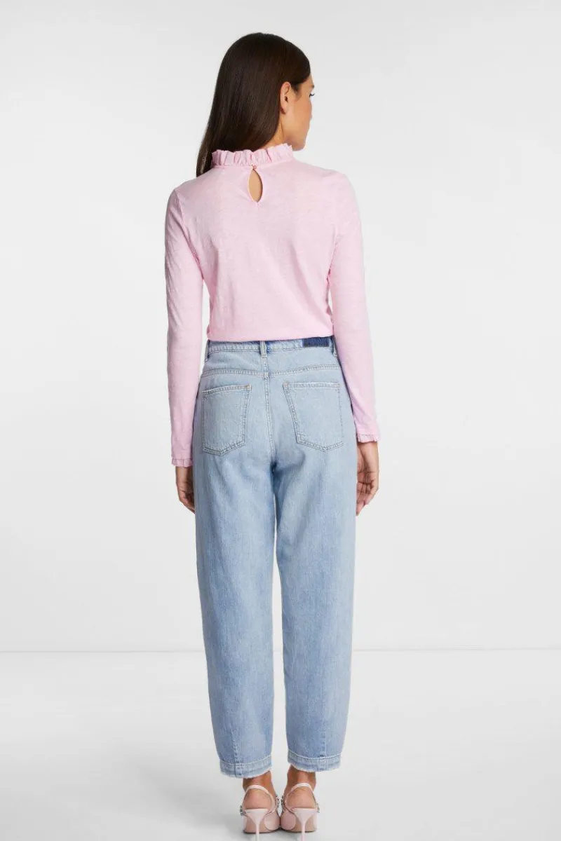 Mit seinen Frill-Details am Kragen und Ärmelsaum schaut dieses Longsleeve auch solo getragen klasse aus. Dank Bio-Baumwolle in luftiger Slub-Struktur überzeugt es mit superangenehmem Tragekomfort. Das Basic kommt im figurnahem Fit.