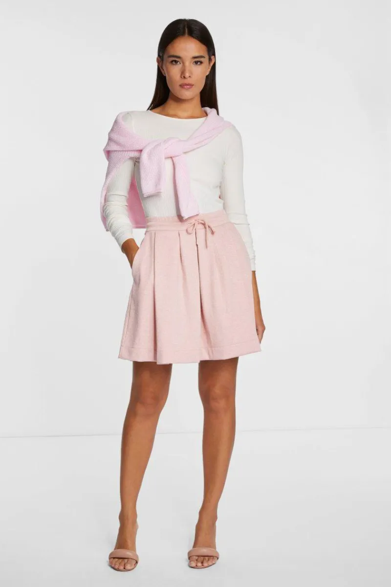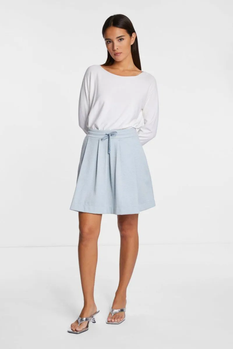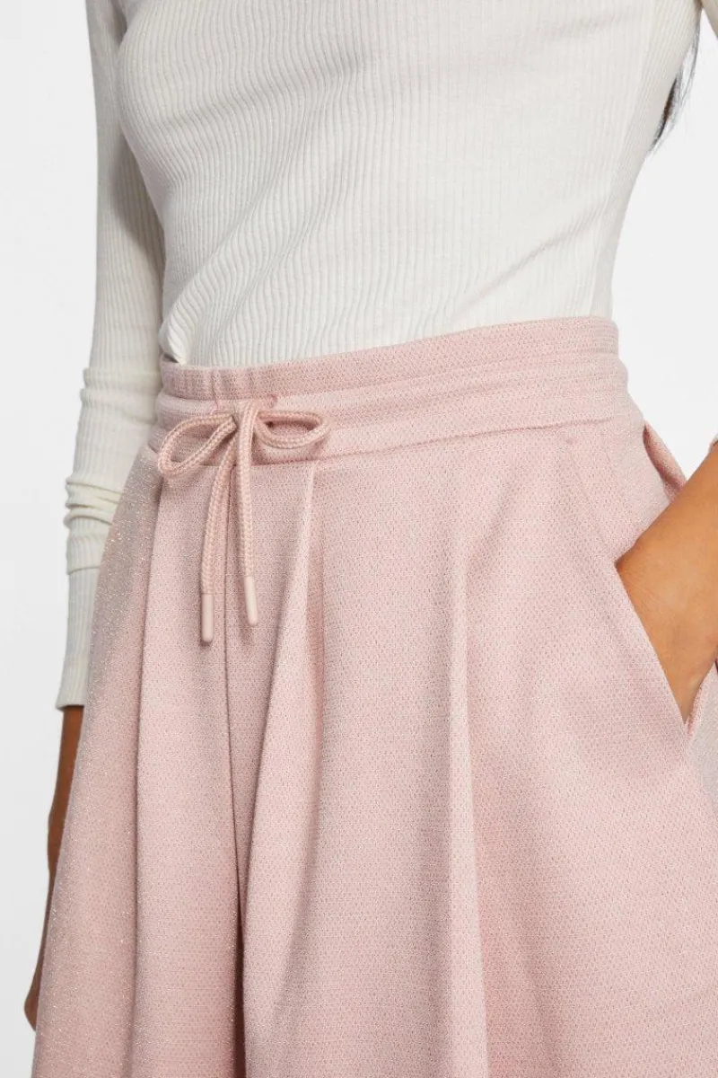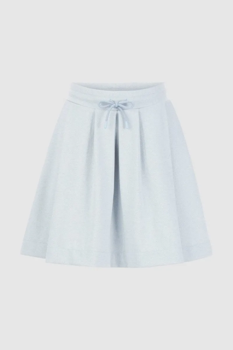Durch seine ausgestellte Form aus festem, GRS-zertifiziertem Jacquard-Material mit Glanzgarn präsentiert sich dieser Minirock unverschämt lässig. Seine Falten münden in einem Bund mit Kordelverschluss. Seitentaschen bringen Extrakomfort.