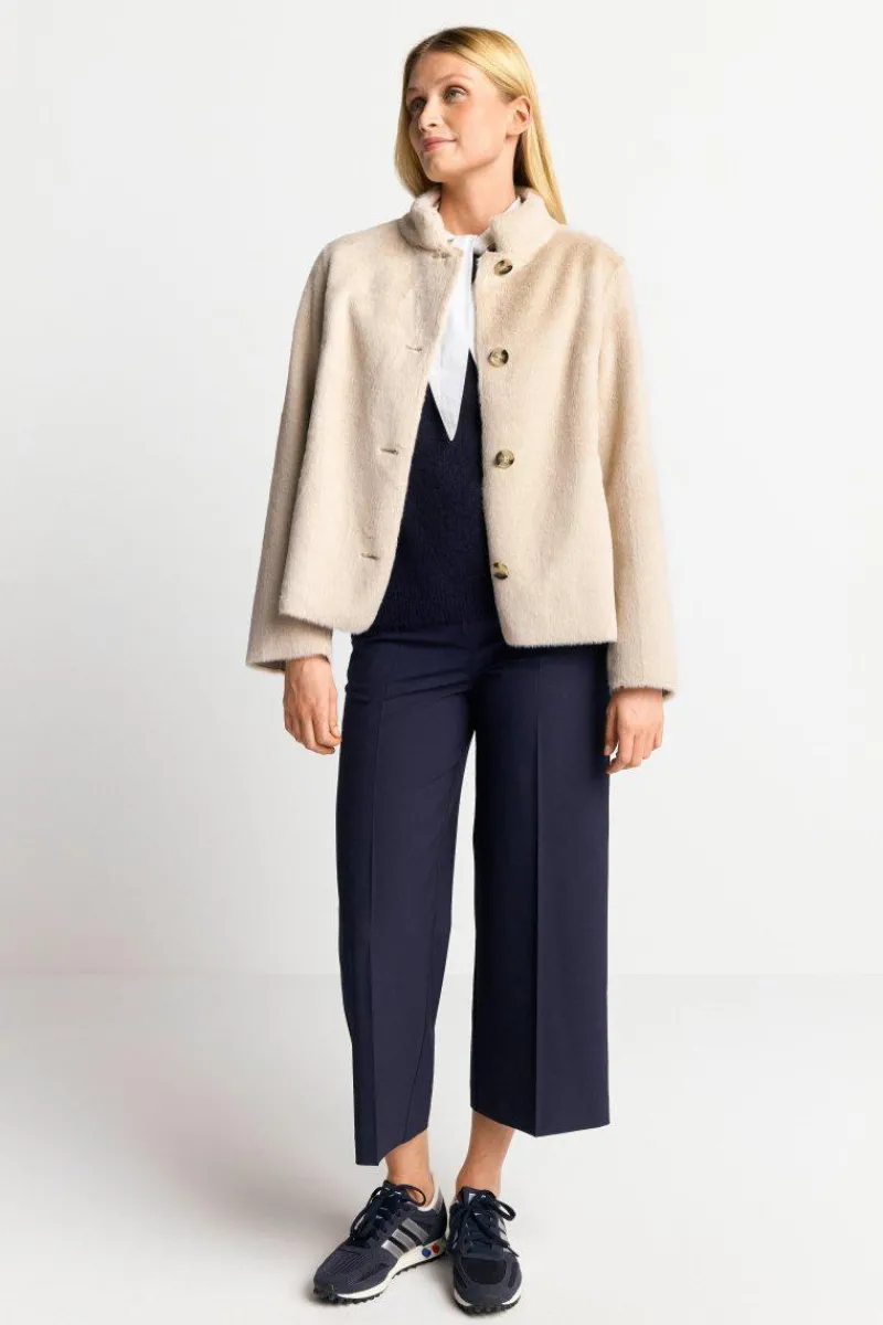 Diese Übergangsjacke aus superweichem Fake Fur wird dank ihres zeitlosen Charmes und Stehkragen zum eleganten Must-have! Die lockere Passform, große Knöpfe und Taschen sorgen für ein komfortables Tragegefühl.