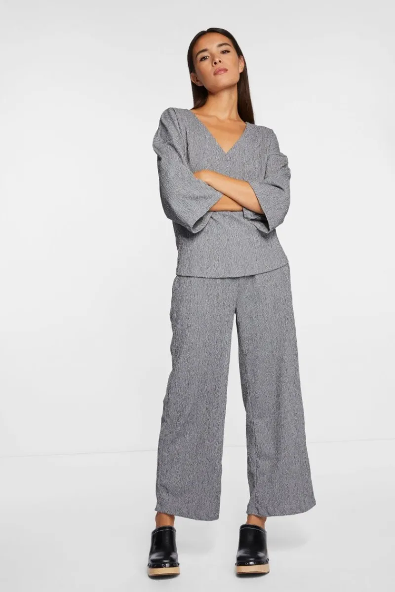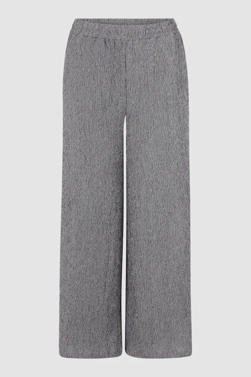 Das zweifarbige Kreppmaterial der Pants bringt ein ausdrucksstarkes Gesamtbild. Trendig präsentiert sich die Hose auch mit ihrem weiten Bein. Dank des Gummibundes und der Taschen trägt sie sich recht bequem.