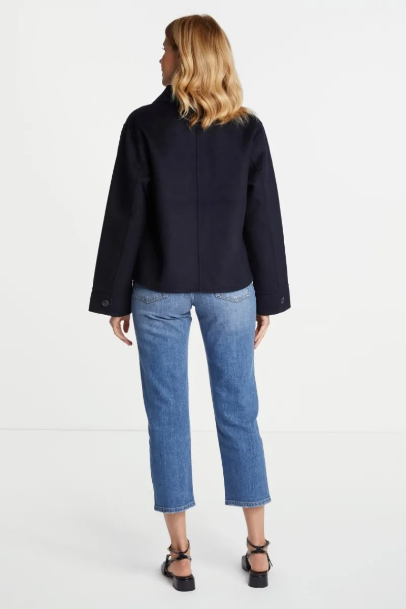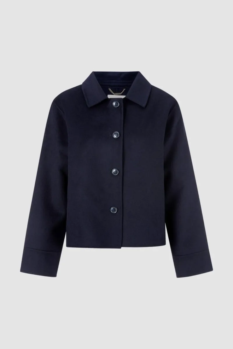 Durch ihren dichten Material-Mix mit hohem Wollanteil bringt Dich diese kastige Double-Face-Jacke schön warm durch die kalte Jahreszeit. Sie kommt mit Kragen, Seitentaschen sowie Knöpfen im Vorderteil und am Ärmelsaum. Obermaterial: 70% Wolle, 30% Polyester Waschbarkeit: Nicht waschen