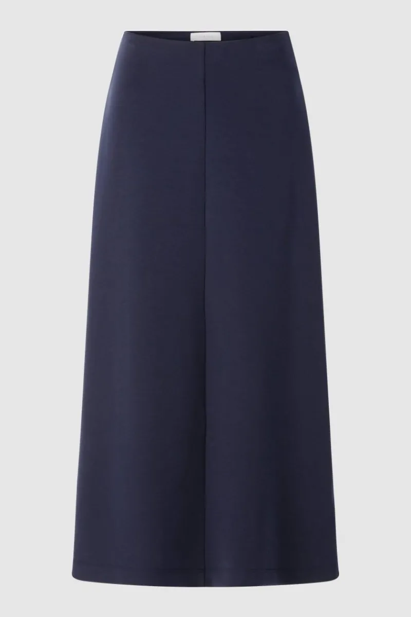 Der Midirock aus super weichem Interlock-Jersey präsentiert ein minimalistisches Design in A-Form. Die Passe und der elastische Bund unterstreichen sein angenehmes Tragegefühl. Obermaterial: 52% Modal, 42% Polyester, 6% Elasthan Waschbarkeit: Schonwaschgang 30°C