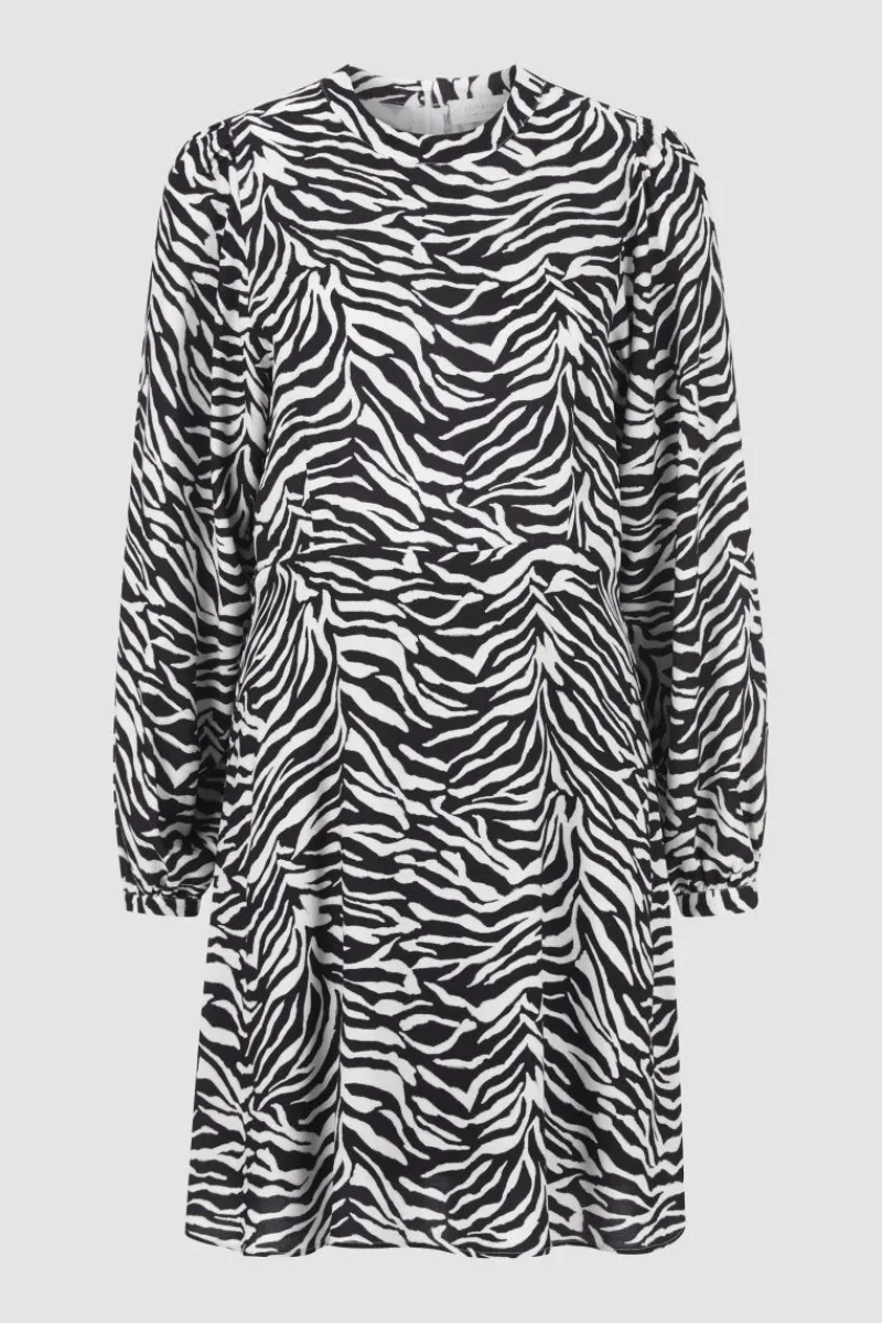 Durch den Allover-Print auf zart fließender Viskose erhält das Minikleid seinen verspielten Charakter. Der Rumpf ist figurnah mit Rundhals geschnitten und wird durch weite Ärmel mit schmalen Manschettenbündchen ergänzt, der weite Rock umspielt die Beine. Ein Zipp im Rücken sorgt für bequemes An- und Ausziehen. Obermaterial: 100% Viskose Waschbarkeit: Schonwaschgang 30°C