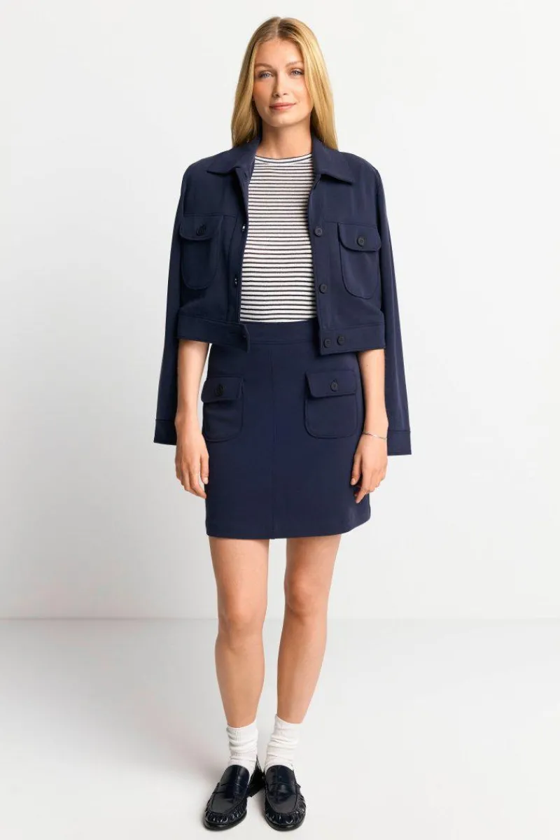 Dieser elegante Minirock besteht aus supersoftem Jersey und wird dank aufgesetzter Taschen zum It-Piece für sportlich-elegante Looks! On top garantiert der elastische Bund und die Stretch-Qualität ein komfortables Tragegefühl.
