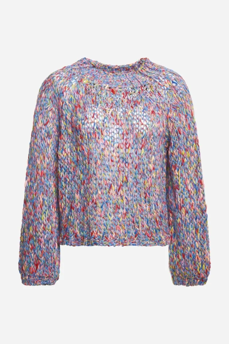 Dieser bunte Pullover aus Melangestrick ist ein Must-have für farbenfrohe Herbstoutfits! Die Multicolor-Optik und der weite Schnitt machen ihn zum Hingucker für lässige Looks.