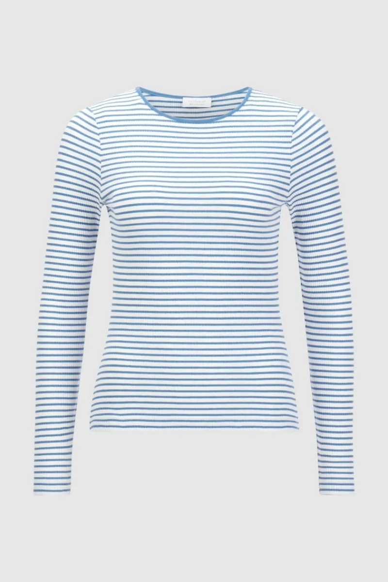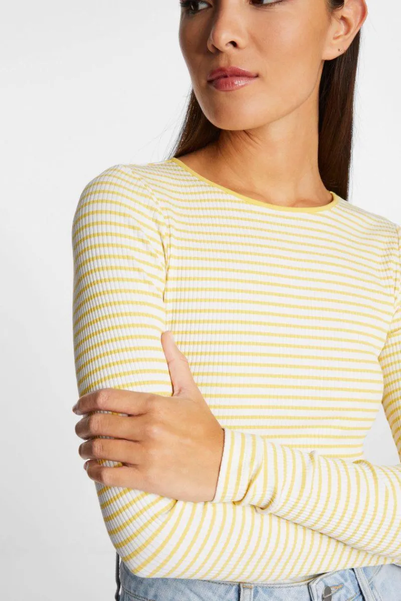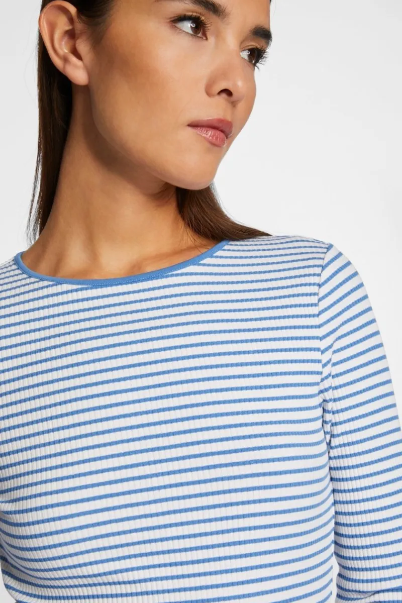 Das gestreifte Rip-Longsleeve bringt Abwechslung in Deine Basics. Es kommt im Bodycon-Fit mit Rundhals. Die Bio-Baumwolle mit Elasthananteil garantiert den ganzen Tag über unschlagbaren Tragekomfort.