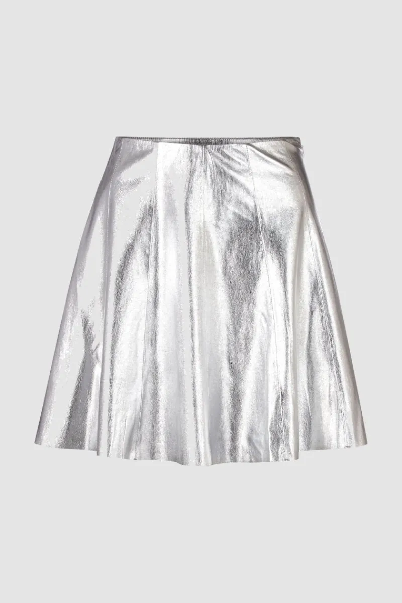 Dieser kurze Rock glänzt mit einem futuristischen Leder-Look. Er hat eine weit ausgestellte A-Form und kommt mit Teilungsnähten. An der Seite befindet sich ein kurzer Reißverschluss. Obermaterial: 78% Polyester, 22% Polyurethan Waschbarkeit: Schonwaschgang 30°C