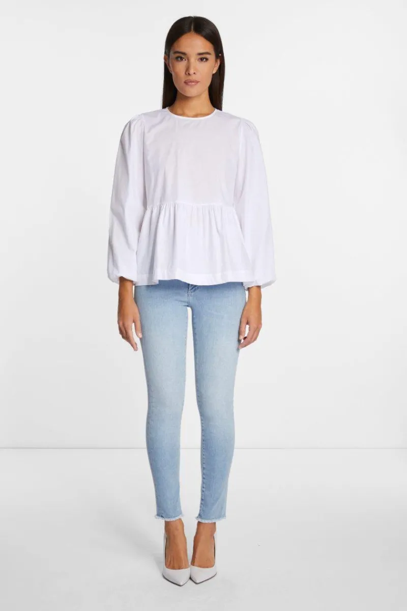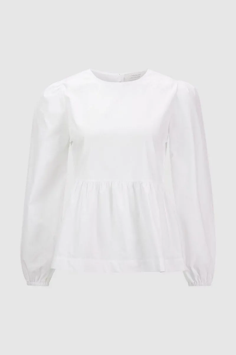 Wenn Du mehr als ein klassisches Basic wünschst, wird Dir diese Schlupfbluse gefallen. Das Schößchen und auch die weiten Ärmel mit elastischem Bund verleihen ein extravagantes Up-date. Der Rundhals wird mit einem zarten Knopf im Nacken geschlossen. Dank der organischen Baumwolle wirst Du dieses Oberteil lieben.