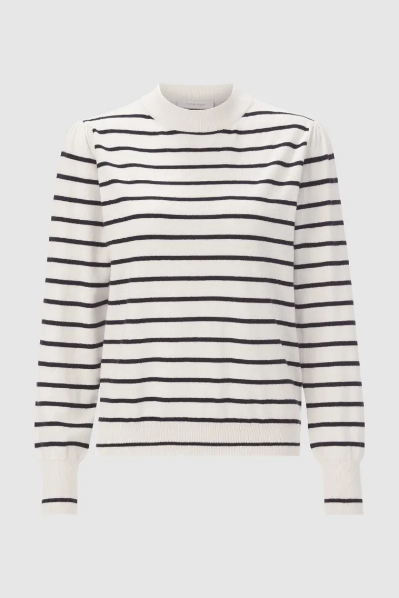 Kuschelig weicher Lieblingsstyle: Dieser Strickpullover kommt in einem Material-Mix mit edlem Kaschmir. Maritime Streifen und ein aktueller Mockneck bringen einen entspannten Look, ebenso auch der weite Schnitt. Obermaterial: 90% Baumwolle, 10% Kaschmir Waschbarkeit: Handwäsche