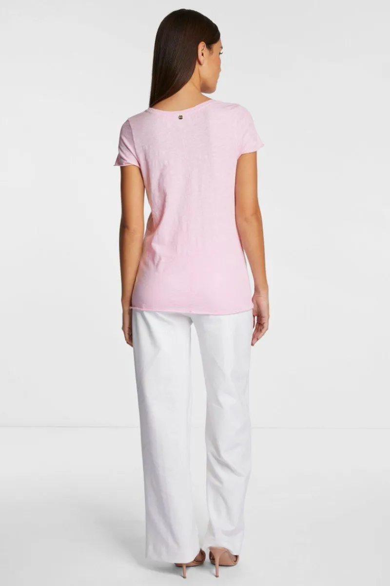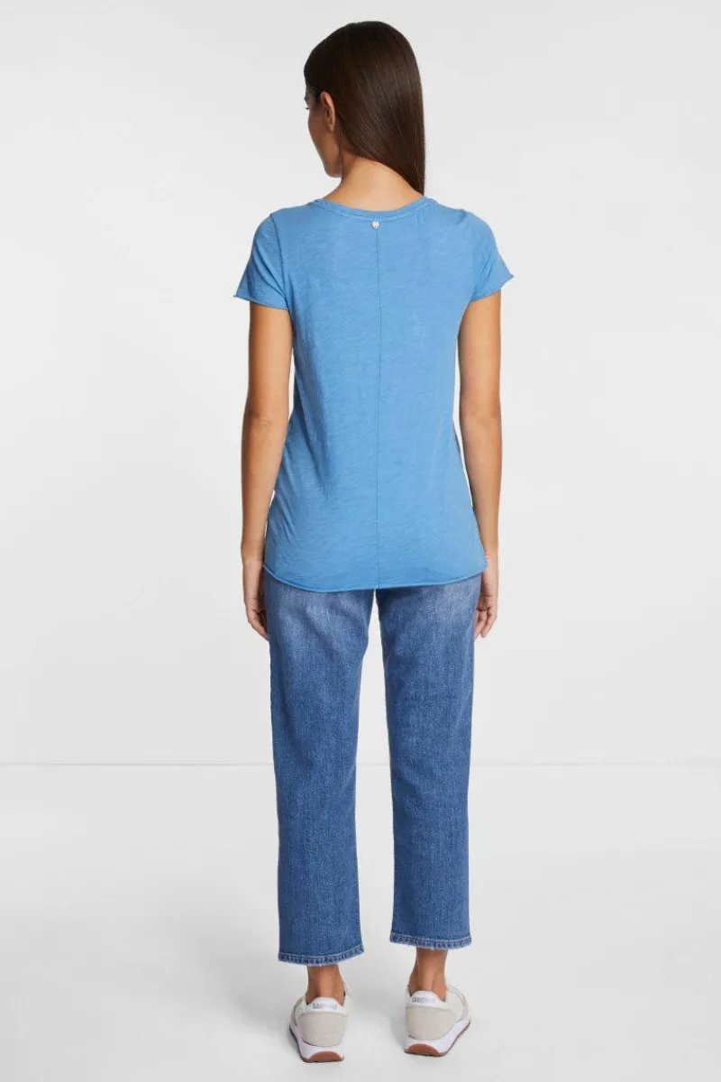 Ziemlich lässig präsentiert dieses T-Shirt eine luftige Slub-Oberfläche und offene Saumkanten. Passend dazu besitzt es einen weiten Rundhalsausschnitt. Es sitzt bodycon und kommt in angenehm kühlender Bio-Baumwolle.
