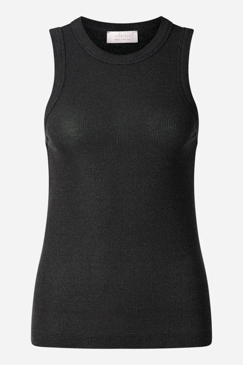 Das schwarze Glam-Top aus Rippstrick ist Dein neuer Allrounder für jeden Anlass! Mit schimmerndem Glitzer und einer figurbetonten Passform zaubert es einen stilvollen Look. Kombiniere es mit Jeanshosen oder Röcken sowie Blazern oder Strickjacken.