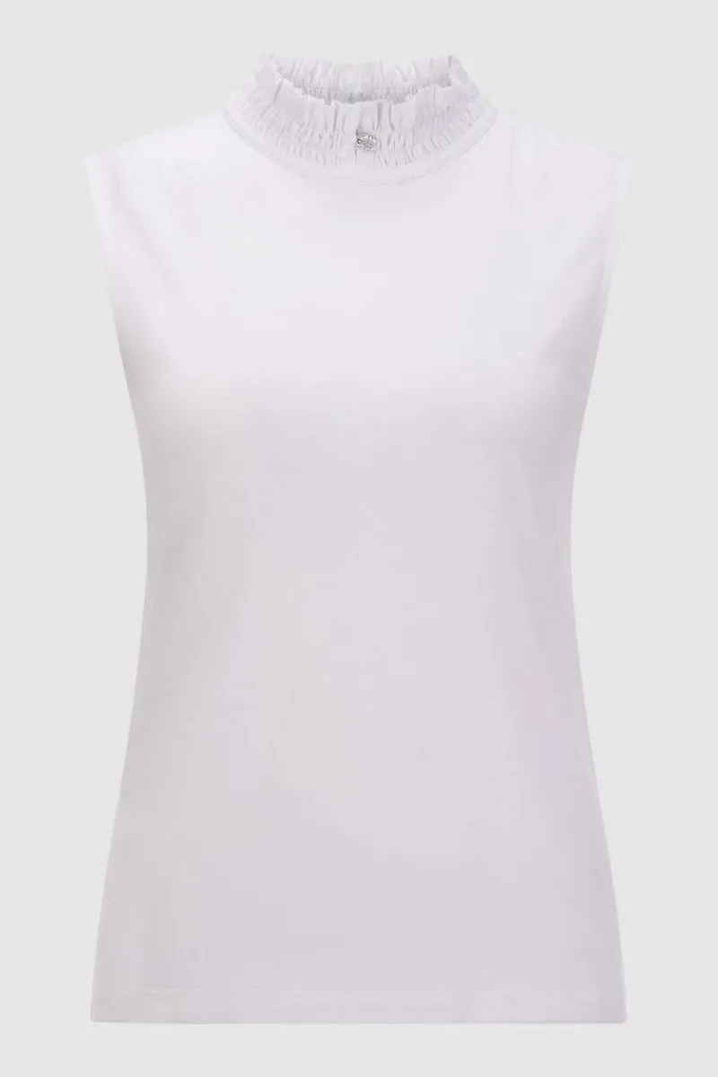 Zaubere Dir mit diesem verspieltem Top ein Layering ganz nach Deinem Geschmack. Blickfang sind der gesmokte Kragen mit Strassverzierung. Das angenehme Oberteil sitzt hautnah und besitzt einen kurzen Rückenreißverschluss.